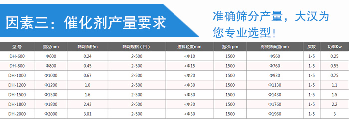 不同的用戶、企業(yè)、行業(yè)對催化劑的篩分處理量要求也是不同的,大漢機械所生產(chǎn)的能篩分催化劑的振動篩多大十幾種型號,產(chǎn)量小的就適用小型號振動篩(如:DH-400、DH-600型等);產(chǎn)量的的就適用大型號振動篩(如:DH-1500、DH-1800型等)您的準(zhǔn)確篩分處理產(chǎn)量也是影響催化劑振動篩選型的重要參考。