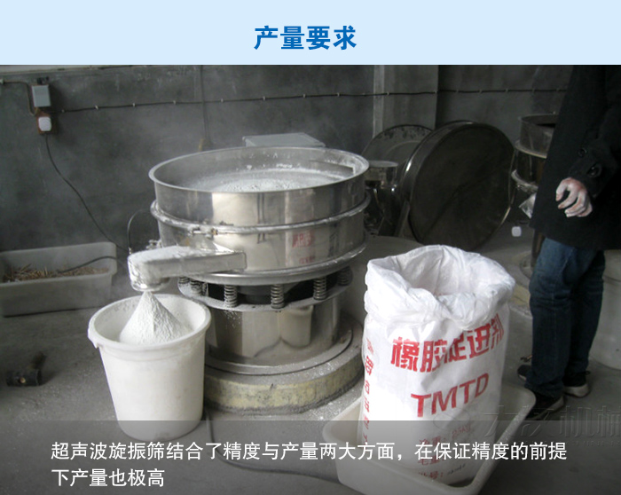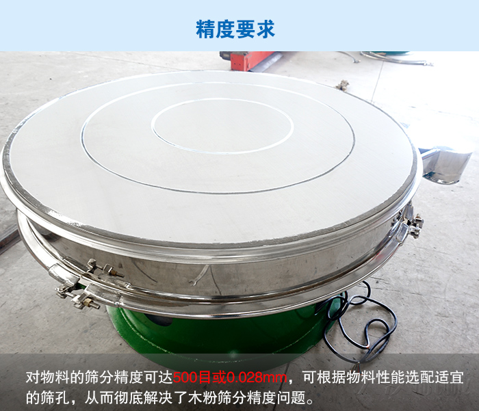 解決方法:超聲波旋振篩具有體積小、結(jié)構(gòu)簡單合理、篩分精度高、維修方便、保養(yǎng)簡單、篩網(wǎng)壽命長等優(yōu)點(diǎn)??蓡螌踊蚨鄬邮褂茫蛇_(dá)到五層,對物料的篩分精度可達(dá)500目或0.028mm,可根據(jù)物料性能選配適宜的篩孔,從而解決了木粉篩分精度問題。