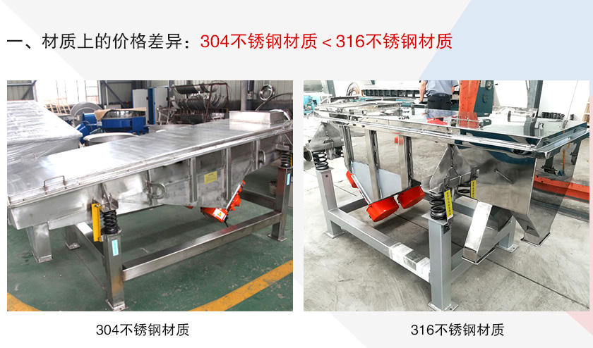 不銹鋼直線振動篩篩面層數(shù)可至5層,單層用于除雜,多層用于分選不同粒度規(guī)格的物料,主要是按照用戶自身的篩分目的來選擇,層數(shù)越高,制造成本就越大,所以價格一般就會越貴,在材質、型號相同情況下,每相隔一個層數(shù),不銹鋼直線振動篩價格就會增加400~1200元。