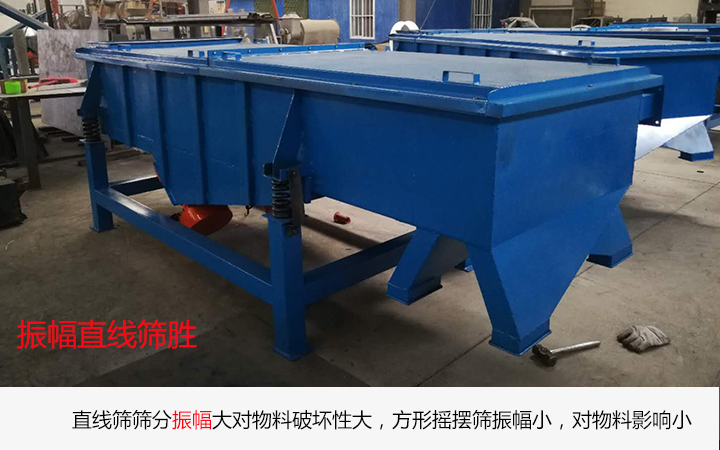 總結(jié):直線篩篩分振幅大對(duì)物料破壞性大,方形搖擺篩振幅小,對(duì)物料影響小。