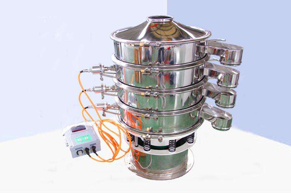 超聲波振動(dòng)篩電源產(chǎn)生的高頻電通過(guò)換能器轉(zhuǎn)換成高頻正弦形式的縱向振蕩波,這些振蕩波傳到共振器上使共振器產(chǎn)生共振,然后由共振器將振動(dòng)均勻傳輸至篩面。篩網(wǎng)上的物料在做低頻三次元振動(dòng)的同時(shí),疊加上超聲波振動(dòng),既可防止網(wǎng)孔堵塞,又可提高篩分產(chǎn)量和精度。