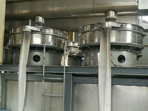 超聲波振動(dòng)篩電源產(chǎn)生的高頻電通過換能器轉(zhuǎn)換成高頻正弦形式的縱向振蕩波,這些振蕩波傳到共振器上使共振器產(chǎn)生共振,然后由共振器將振動(dòng)均勻地傳輸至篩面。篩網(wǎng)上的物料在做低頻三次元振動(dòng)的同時(shí),疊加上超聲波振動(dòng),既可以防止網(wǎng)孔堵塞,又可以提高篩分產(chǎn)量與精度。