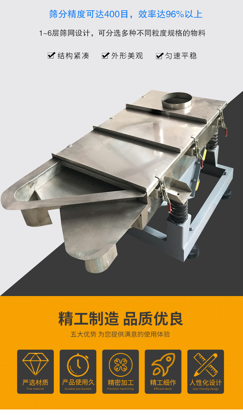 3、1~6層篩網(wǎng)設計,可分選多種不同粒度規(guī)格的物料;